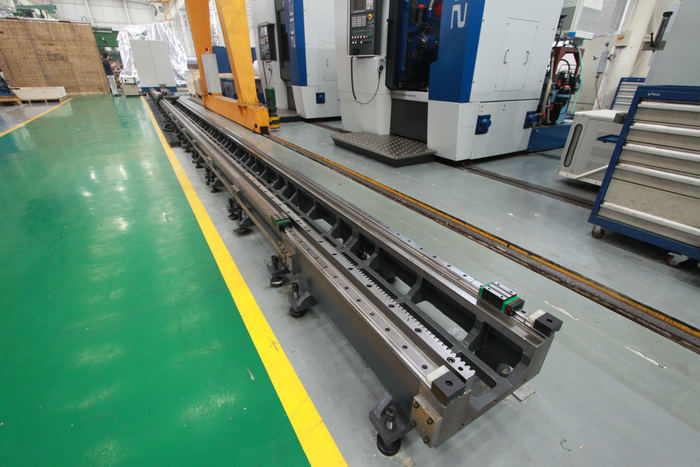 工業(yè)機(jī)器人重型地軌采用高強(qiáng)度鑄鐵精密鑄造或焊接而成,通過數(shù)控龍門銑床精密加工達(dá)到高精度來滿足工業(yè)機(jī)器人的直線需要,具有精度高、不易變形、價(jià)格低廉等優(yōu)點(diǎn).