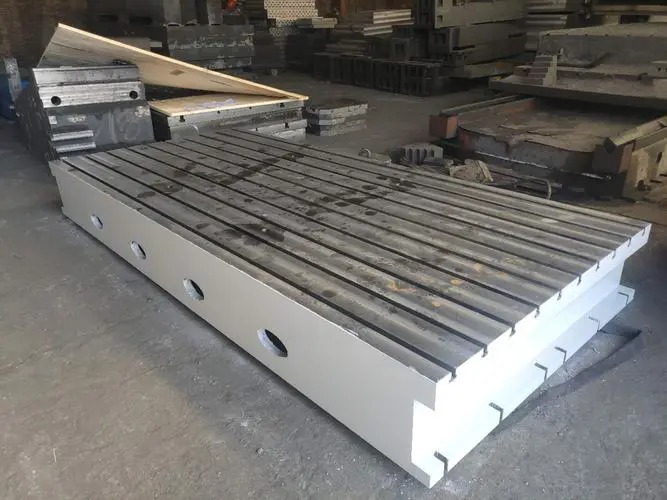 機床工作臺,機床輔助工作臺,龍門機床工作臺,鏜銑床工作臺都屬于機床加工工作臺,機床工作臺特性:上面有孔和T型槽,用來固定工件,和清理加工時產生的鐵屑。