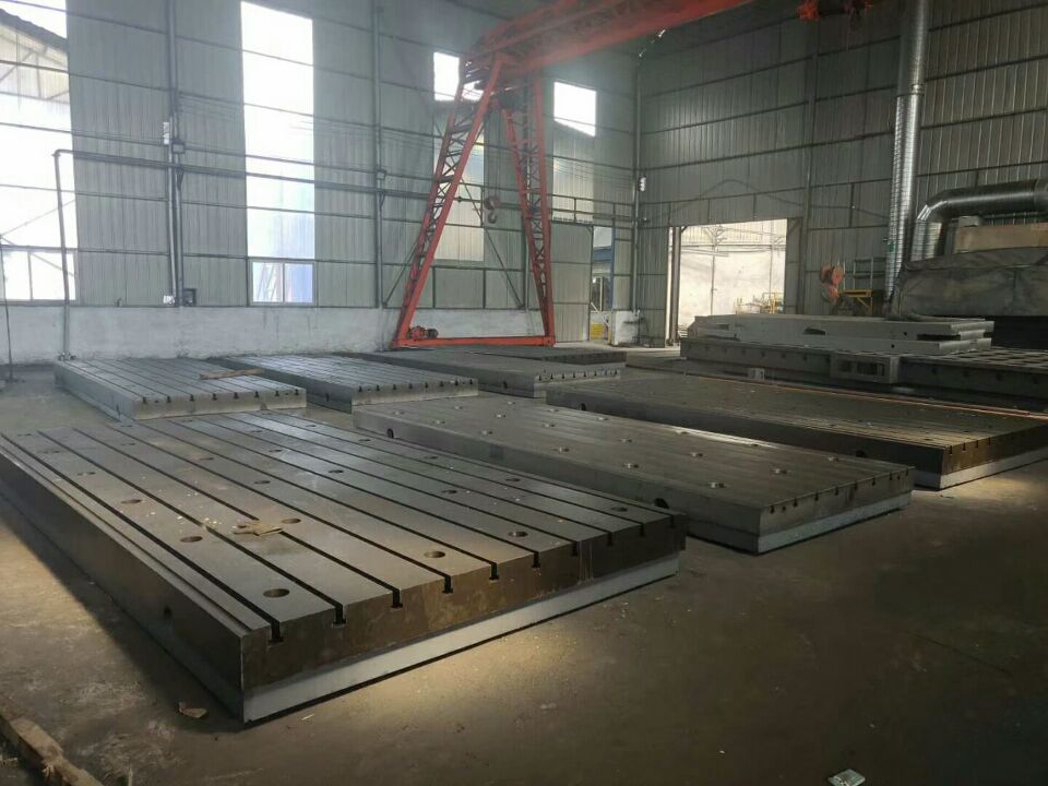 鏜銑床工作臺的材質:為縛度鑄鐵HT200-300,工作面硬度為HB220-350,經過兩次人工處理(人工退火600度-700度和自然時效2-3年)對落地鏜銑床工作臺,落地銑床工作臺進行熱處理的目的是減少逐漸中的應力,消除鑄鐵平板的部分白口組織,提高落地鏜銑床工作臺,落地銑床工作臺工作表面的硬度和耐磨性,使該鑄鐵平臺,鑄鐵平板的精度穩定,耐磨性能好。